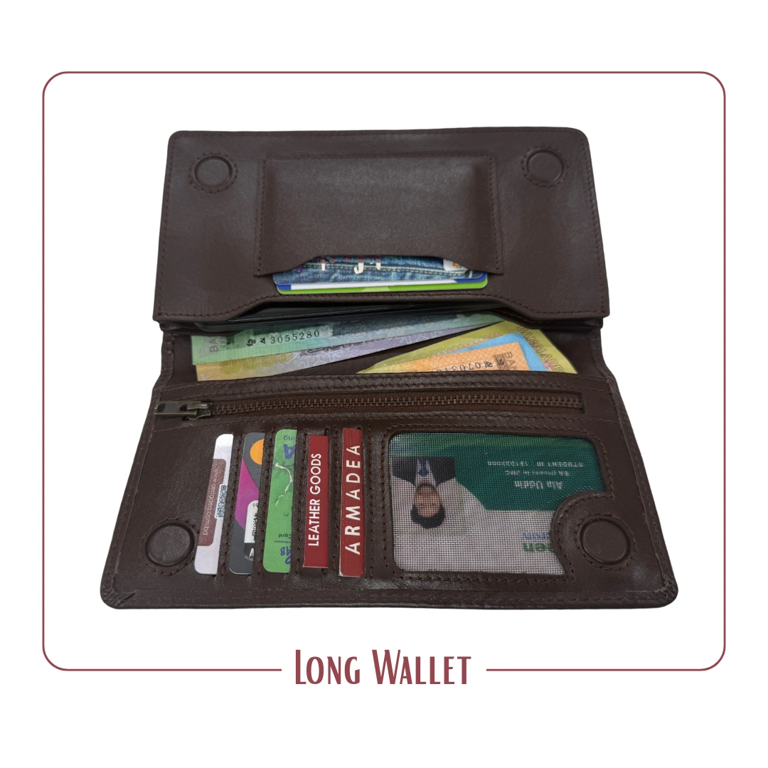 ৪টা ম্যাগনেট এর লং ডাবল মোবাইল চেম্বার ওয়ালেট, কিংবা ১টি তে মোবাইল রাখলে অন্যটিতে ক্যাশ টাকা / ডকুমেন্ট রাখতে পারবেন।