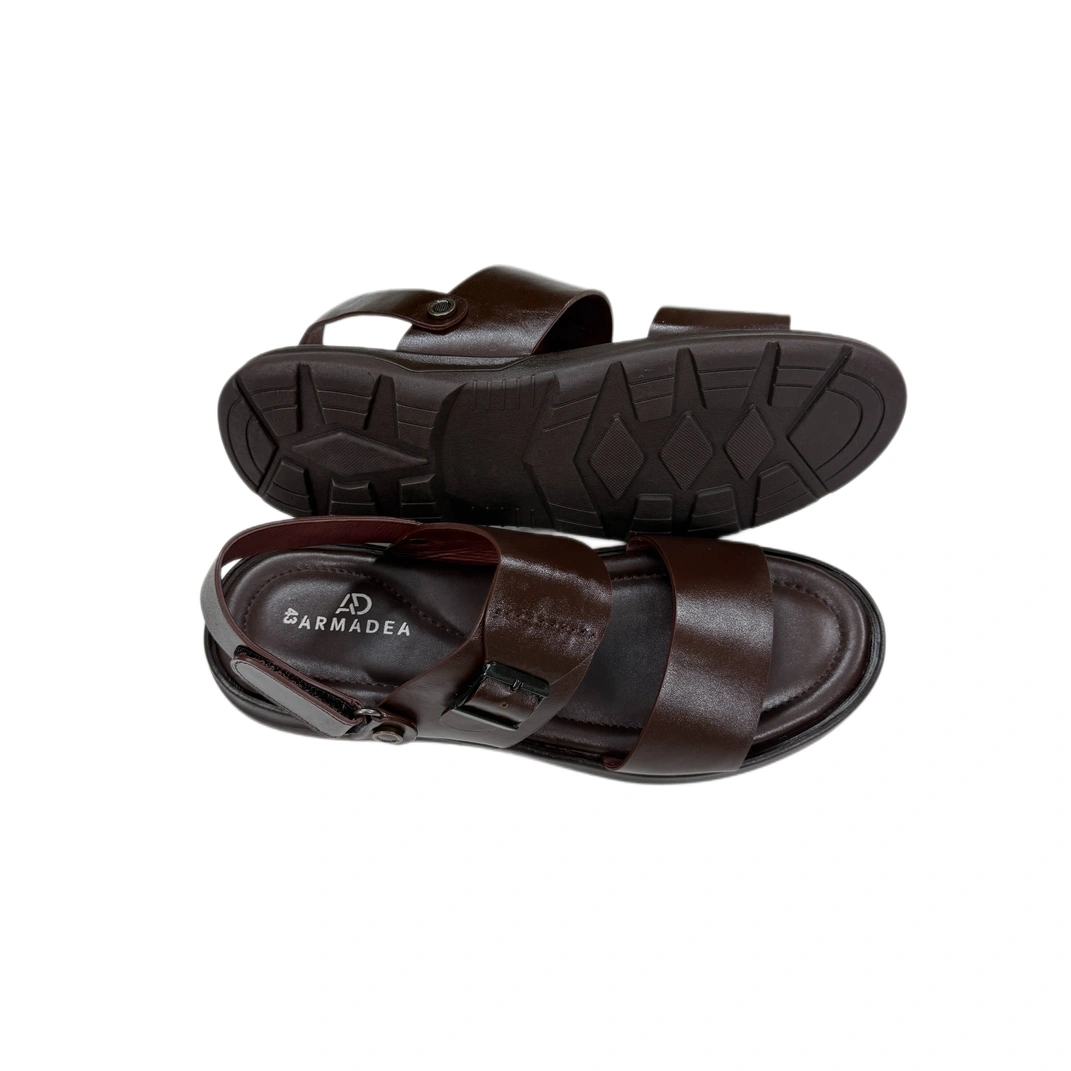 Brown genuine leather sandal. Features with comfortable footbed, back belt.