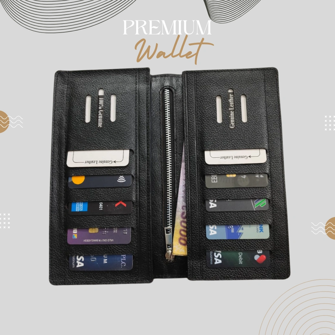এটি ডাবল মোবাইল পকেট ওয়ালেট, কিংবা ১টি মোবাইল রাখলে ক্যাশ টাকা / ডকুমেন্ট বেশি রাখতে পারবেন। এই ওয়ালেট এর মোবাইল বা ক্যাশ রাখার চেম্বার ২টা ২ পাশে একটা ডানে একটা বামে। ওয়ালেট টির আপারে লেজারের সুন্দর ডিজাইন করা আছে।